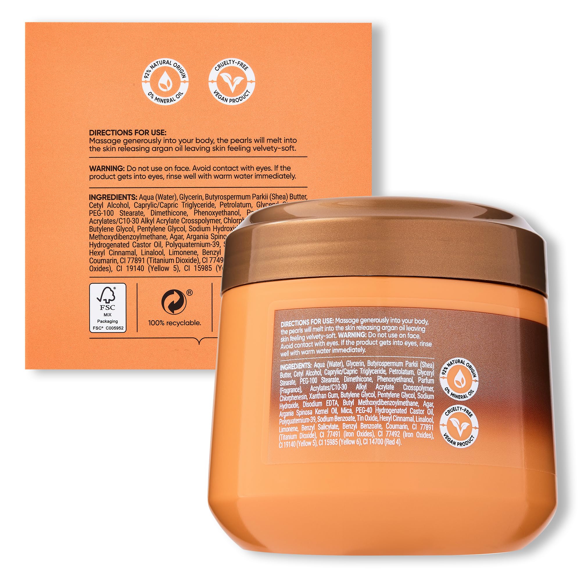 Sanctuary Spa Melting Pearl Body Butter with Shea Butter & Argan Oil, No Mineral Oil, Cruelty Free & Vegan Body Moisturiser for Women, 300g